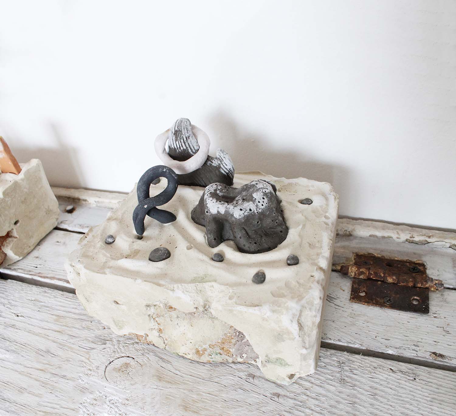 Para el Programa de Residencia Artística de la Macolla Creativa me centré en investigar el valor simbólico y afectivo que le otorgan los pastoreños al lugar que habitan. Un ejercicio para encontrarme con la memoria cultural, el tiempo y la naturaleza de la Puerta de Caracas. Me concentré en la acumulación, recolección y delimitación del espacio a través de apuntes para definir los elementos que caracterizan el paisaje, apoyándome en testimonios, registros fotográficos y visitas guiadas en La Pastora junto al cronista Víctor Zambrano quien fue mi guía por las calles durante la residencia, así pude delimitar y procesar la información necesaria para la construcción del discurso plástico.