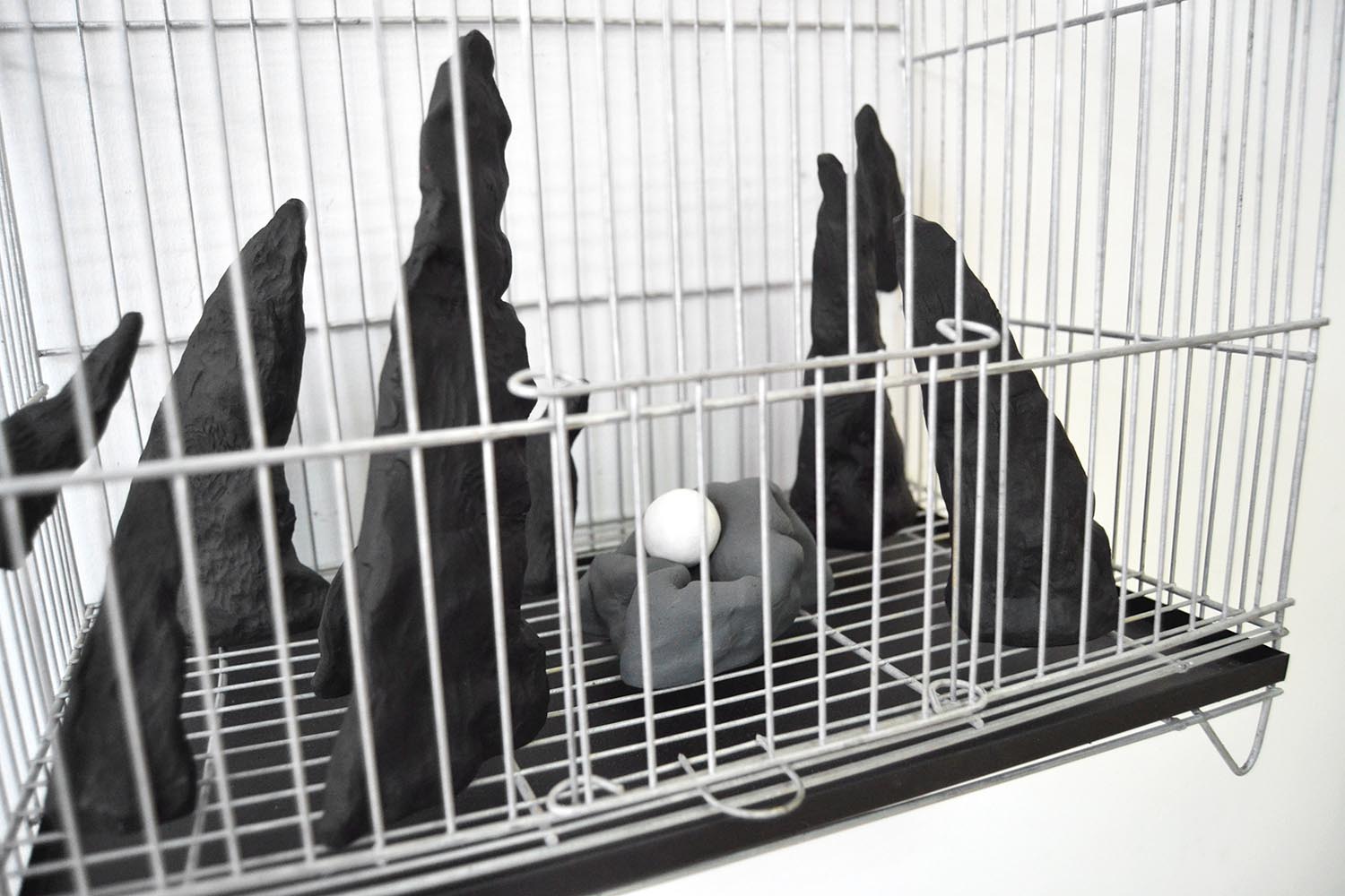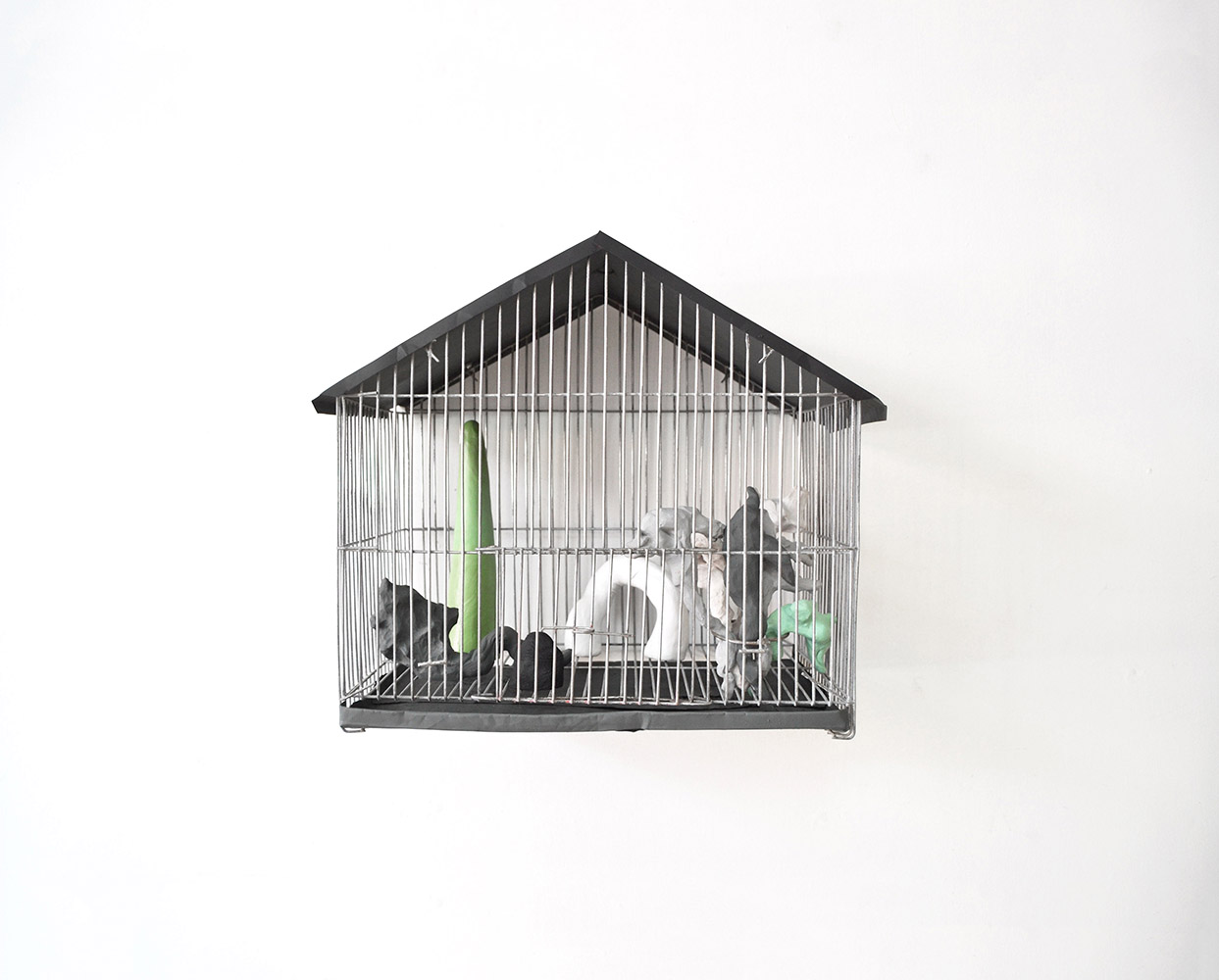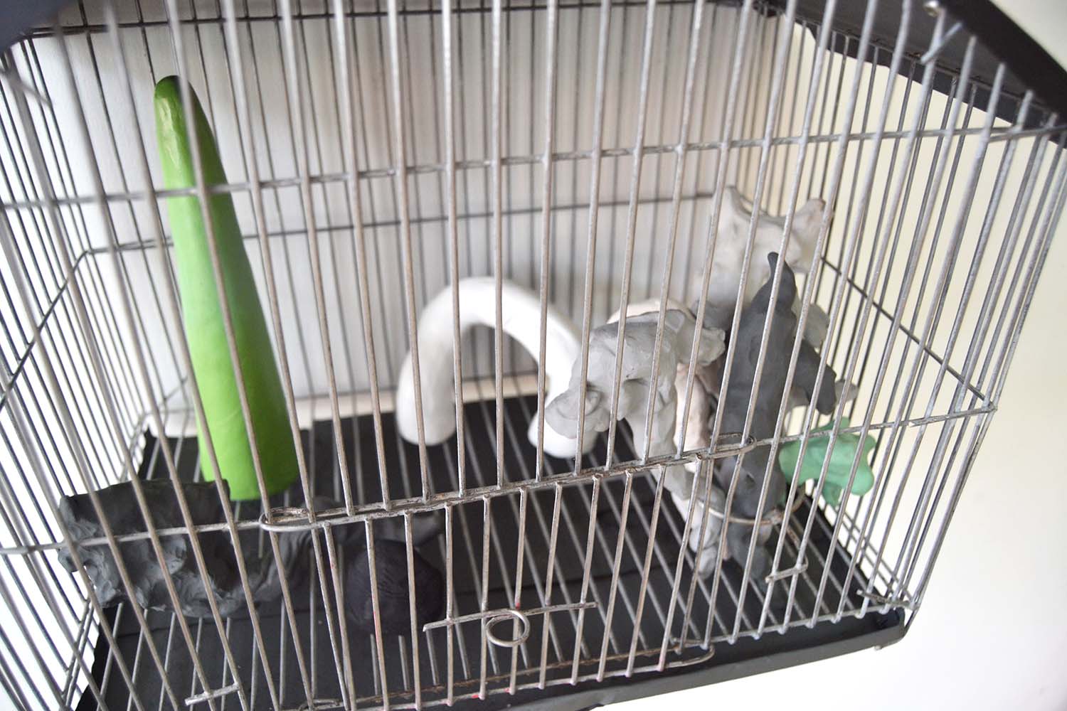 Paisajes delimitados es una instalación conformada por cinco jaulas que recrean composiciones espaciales de micro paisajes permitiendo observar físicamente a través de la malla de las jaulas los límites espaciales que determinan y configuran los paisajes geográficos y pictóricos. En este proyecto mi obra pone en dialogo la idea de que una extensión se convierte en paisaje cuando extraemos de ella un fragmento, las jaulas están construidas para ser fragmentos o paisajismos antrópicos que recrean la mutabilidad y la multiplicidad de formas y cualidades que adquiere un paisaje al ser delimitado por el ojo humano ya que el paisaje es la forma con la que el hombre se apropia de la naturaleza para darle sus propias lecturas contemplativas.