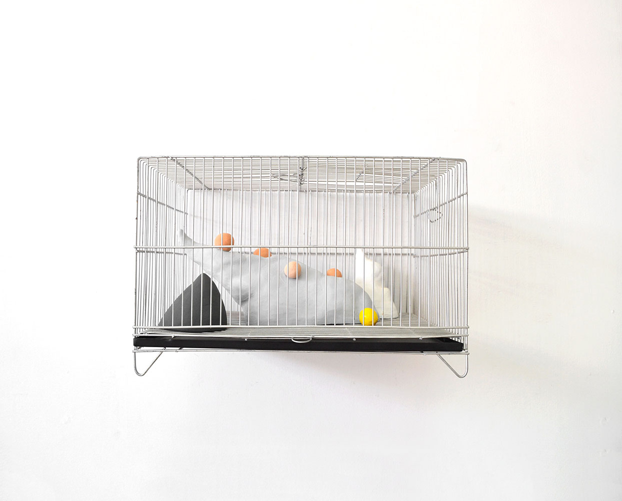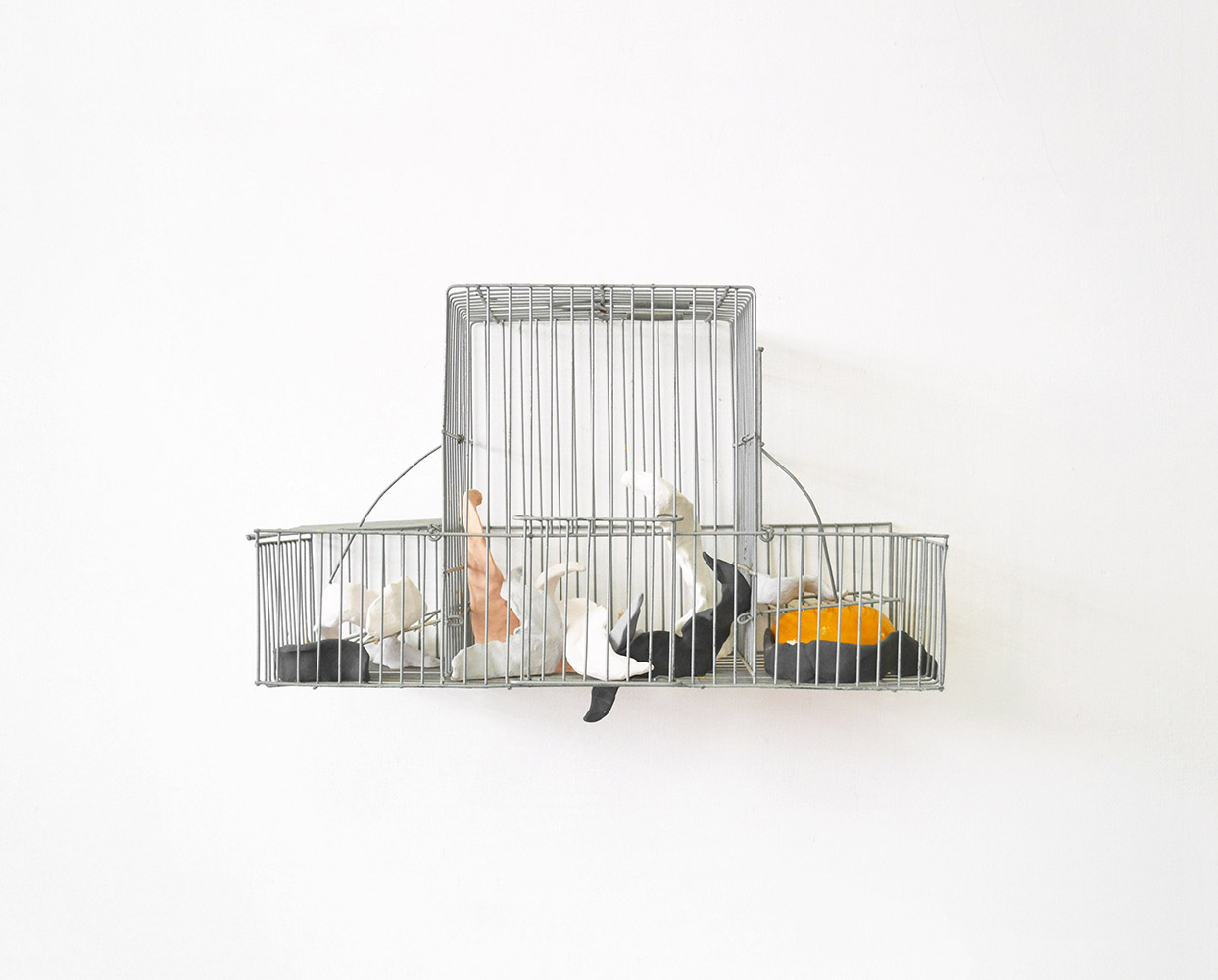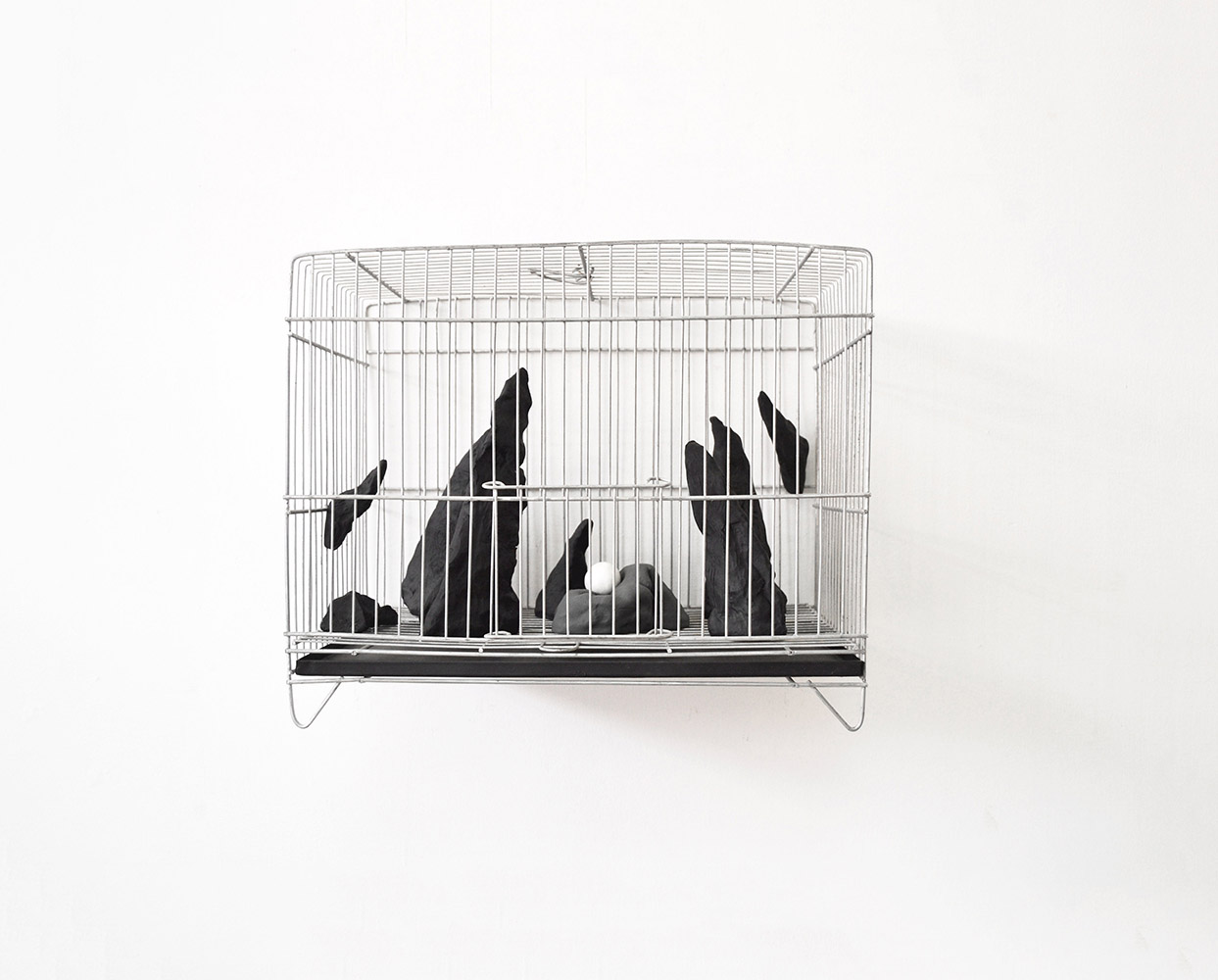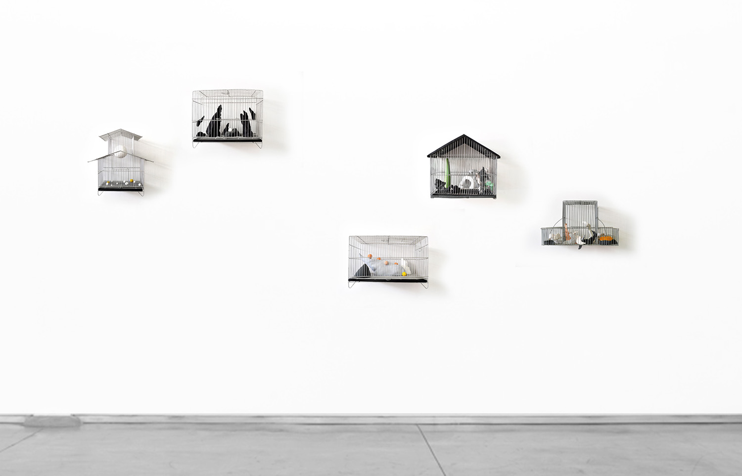 Paisajes delimitados es una instalación conformada por cinco jaulas que recrean composiciones espaciales de micro paisajes permitiendo observar físicamente a través de la malla de las jaulas los límites espaciales que determinan y configuran los paisajes geográficos y pictóricos. En este proyecto mi obra pone en dialogo la idea de que una extensión se convierte en paisaje cuando extraemos de ella un fragmento, las jaulas están construidas para ser fragmentos o paisajismos antrópicos que recrean la mutabilidad y la multiplicidad de formas y cualidades que adquiere un paisaje al ser delimitado por el ojo humano ya que el paisaje es la forma con la que el hombre se apropia de la naturaleza para darle sus propias lecturas contemplativas.